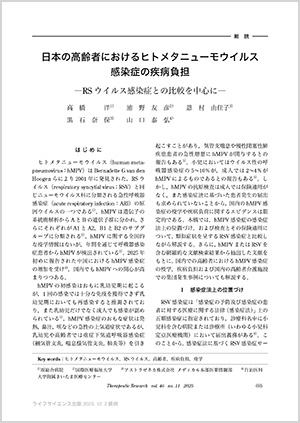 日本の高齢者におけるヒトメタニューモウイルス感染症の疾病負担―RS ウイルス感染症との比較を中心に―(2025年11月号)