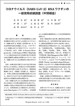 コロナウイルス(SARS-CoV-2)RNA ワクチンの一般使用成績調査(中間報告)(2025年9月号)