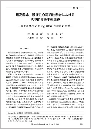 超高齢非弁膜症性心房細動患者における抗凝固療法実態調査―エドキサバン15mg適応追加前後の変遷―(2025年9月号)