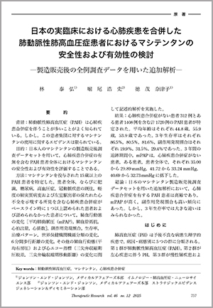 日本の実臨床における心肺疾患を合併した肺動脈性肺高血圧症患者における マシテンタンの安全性および有効性の検討―製造販売後の全例調査データを用いた追加解析―